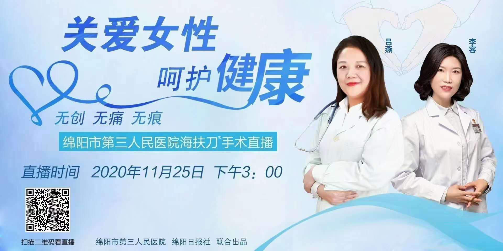 11月25日15:00 ,欢迎在直播间亲眼见证海扶刀®体外杀死肿瘤,听三医院妇科的专家们科普如何预防、治疗常见的妇科疾病。